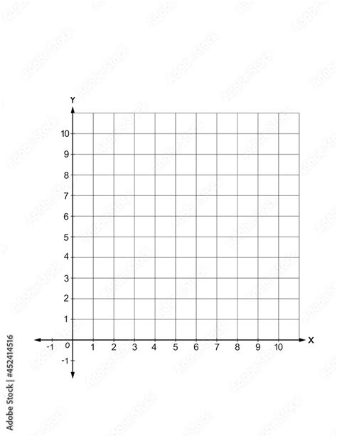 blank first quadrant of coordinate plane, numbered grid graph Stock