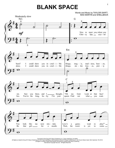 Blank Space Music Notes. Browse our 44 arrangements of blank space. sheet music is available for piano, voice, guitar and 36. Web taylor swift and 17 more.