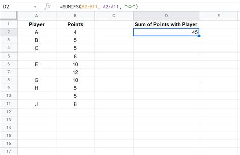 Web in google sheets, if you want to sum values for the cells which are not blank (where the corresponding cell is not empty). Web in google sheets, if you want to sum values for the cells which are not blank (where the corresponding cell is not empty). Web notice how the sumifs formula does not consider cell b9 below (” “) to be blank: